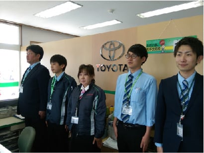 全社員で朝礼を行い、経営理念・社員像の唱和、あいさつ練習、1日の活動内容の確認をします。